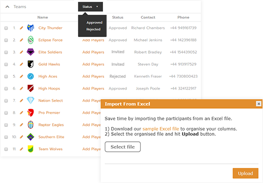 Get rid of emails, calls and complicated forms. Share a registration link on your web and social media or invite teams from previous seasons.